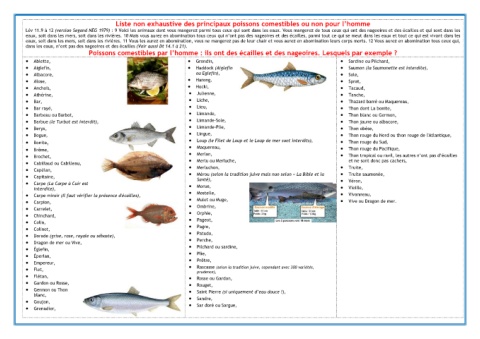 Poissons comestibles par l’homme : ils ont des écailles et des nageoires. Lesquels par exemple ?