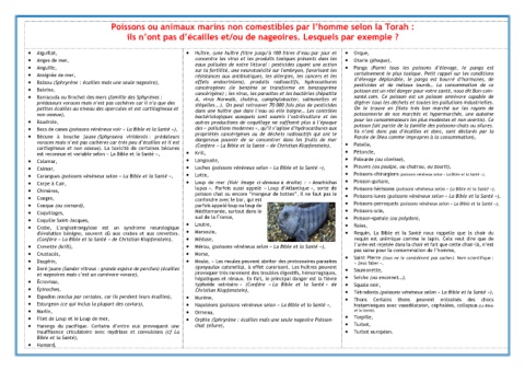 Épinoches, Christian Klopfenstein), Tétrodonts (poissons vénéneux selon « La Bible et la Santé »),