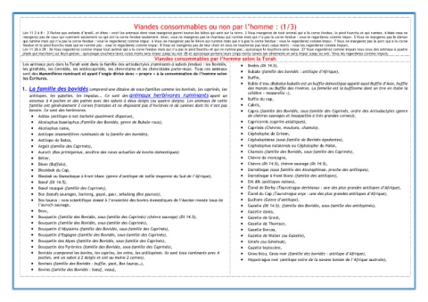 Les animaux purs dans la Torah sont dans la famille des artiodactyles (ruminants à sabots fendus) : les Bovidés, Brebis (Dt 14.5),