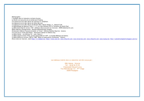 Divers sites sur internet… dont https://fr.chabad.org, https://www.calj.net, www.chiourim.com, www.torax-box.com, www.chiourim.com, www.louisg.net, http://calendrierdeyhwh.blogspot.com/ncr