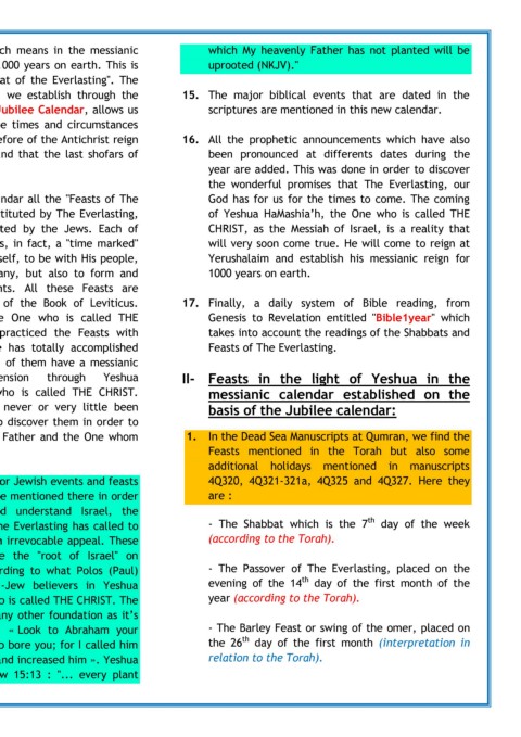 365,24 days. It will be necessary to readjust 1,24 Everlasting", "Feasts" instituted by The Everlasting, of Yeshua HaMashia‘h, the One who is called THE