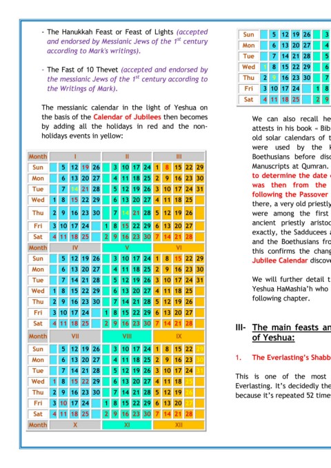 Sun 5 12 19 26 3 10 17 24 1 8 15 22 29 Jubilee Calendar discovered at Qumran. Everlasting in all your dwellings. At these times, The