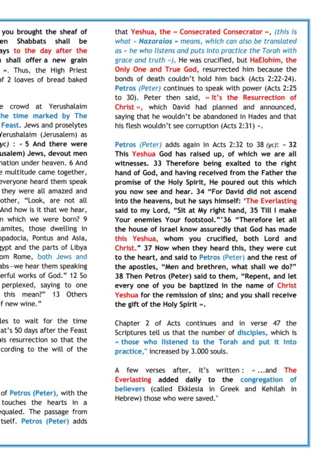 of Firstfruits, 50 days after his resurrection so that the « those who listened to the Torah and put it into