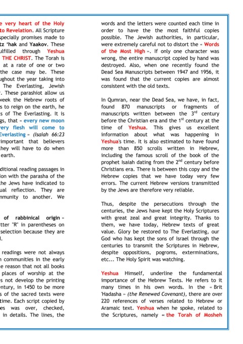 precise. Before, copies of the sacred texts were 'Hadasha » (the Renewed Covenant), there are over