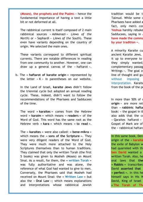 recommendations of the Pharisees and Sadducees In more than 50% of cases, « haftarot of Karaite or abroad. Several series of them are mentioned