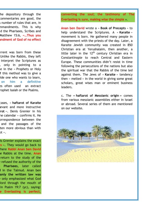 b. The « haftarot of karaite origin » represented by line of thought and guide one who wants to learn, then « melted » in the world in giving some great