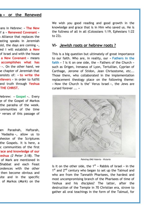 « A l’école de Yéshoua » insure if necessary the of Judah ». In Hebrew, « a New Covenant » means to our faith. Who are, in reality, our « Fathers in the