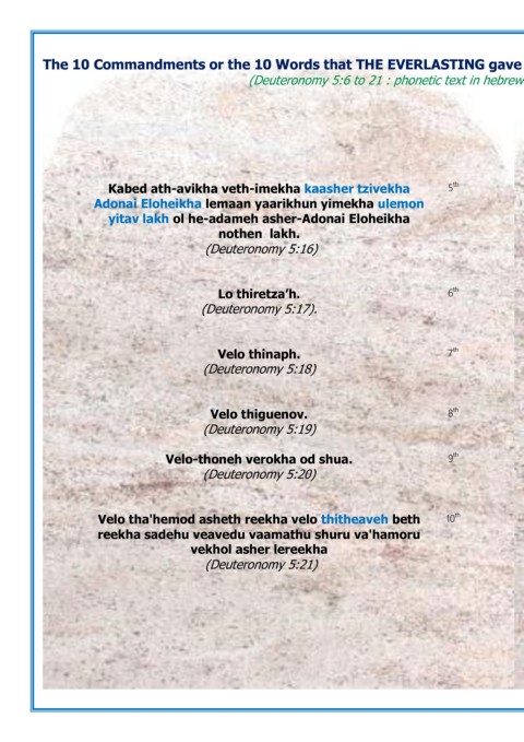 The 10 Commandments or the 10 Words that THE EVERLASTING gave to Mosheh on Mount Sinai for Israel’s children but also for all nations.