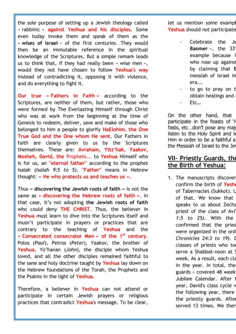 « rabbinic » against Yeshua and his disciples. Some Yeshua should not participate at : Priestly Guards beginning with the class of