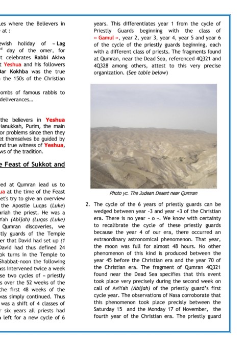 same as « discovering the Hebrew roots of faith ». In of that. We know that the Apostle Luqas (Luke) 2. The cycle of the 6 years of priestly guards can be
