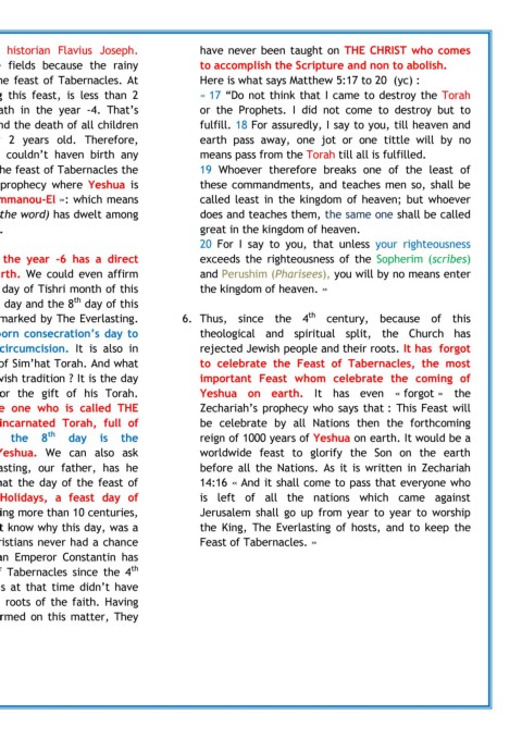 70 of the christian era, should have been of the last, Yeshua, born during this feast, is less than 2 « 17 ―Do not think that I came to destroy the Torah