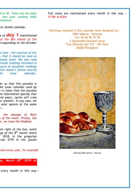 In light green : Non-holidays jewish feasts and events. October 18 2018, is the date of day 1 (mentionned Tel: 06 84 96 72 78