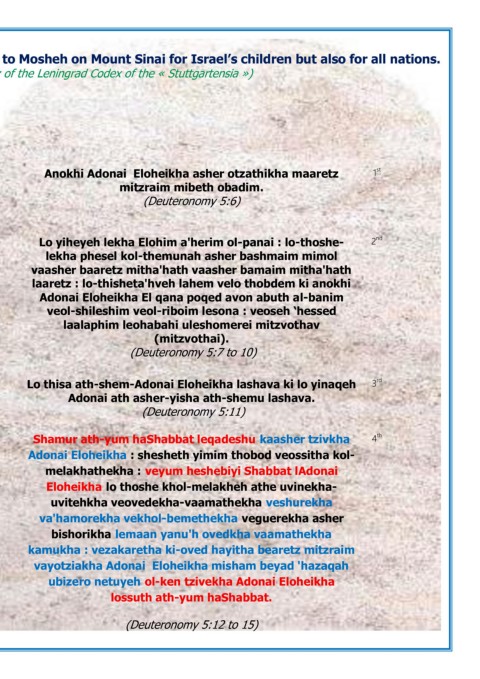 (Deuteronomy 5:6 to 21 : phonetic text in hebrew of the Leningrad Codex of the « Stuttgartensia »)