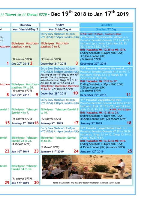 10 month according to the Jubilees calendar - Jewish year 11 Thevet to 11 Shevat 5779 – Dec 19 2018 to Jan 17 2019