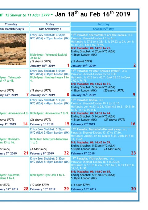 (28 shevat 5779) (29 shevat 5779) (30 shevat 5779) (1 Adar 5779) (2 Adar 5779) (3 Adar 5779) 5:04pm London (UK) (4 Adar 5779)