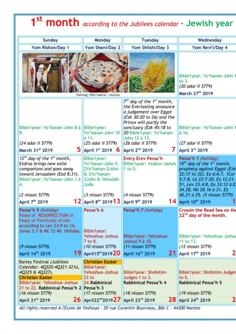 à 11. John 12 à 13. Bible1year: Yo‘hanan-John 19 à 21. (1 nissan 5779) Rosh ‗hodesh Nissan