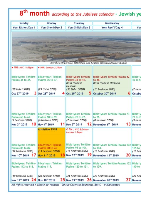 8 month according to the Jubilees calendar - Jewish year 26 Tishri to 25 Hesvan 5780 - Oct 25 to Nov 23 2019