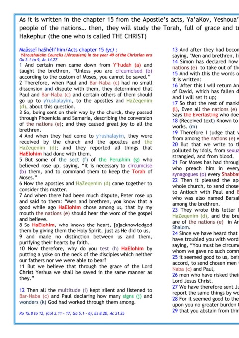 Maâsseï haShéli‘him/Acts chapter 15 (yc) : 13 And after they had become silent, Ya‘akov answered, blood, from things strangled, and from sexual immorality