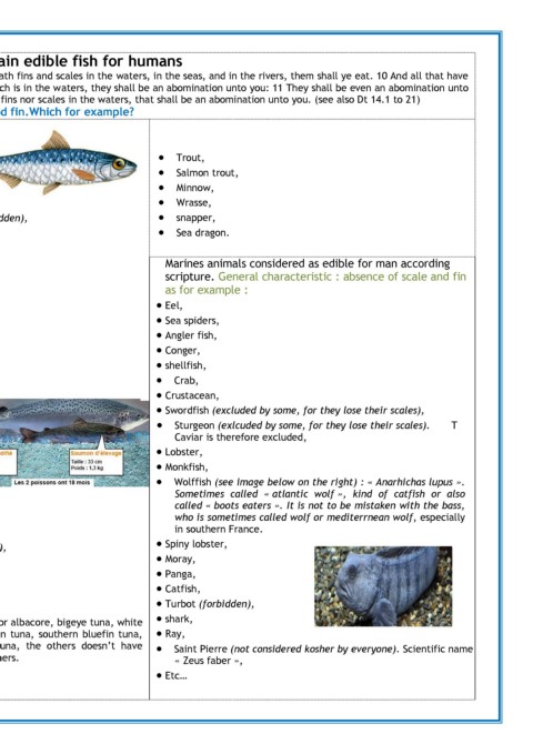 Lev 11.9 to 12 (version Segond NEG 1979) : 9 These shall ye eat of all that are in the waters: whatsoever hath fins and scales in the waters, in the seas, and in the rivers, them shall ye eat. 10 And all that have