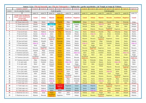 Annexe 1 à la « Fête de Souccoth » ou « Fête des Tabernacles » : Tableau des « gardes sacerdotales » du Temple au temps de Yéshoua