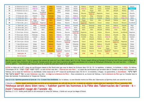 45 9/ Chevat (janv.-février) Pethachja Delaja Harim Hakkots Eliachib Bilga Pethachja Delaja Harim Hakkots Eliachib Bilga Pethachja