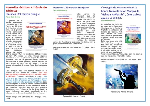 Nouvelles éditions A l’école de Psaumes 119 version française L’Evangile de Marc ou mieux La