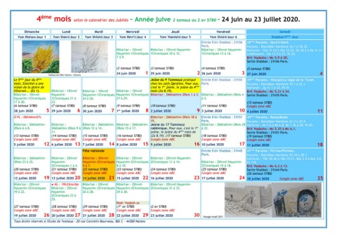 4 ème mois selon le calendrier des Jubilés - Année juive 2 tamouz au 2 av 5780 - 24 juin au 23 juillet 2020.