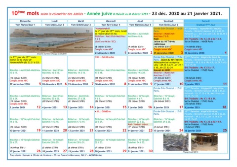 10 ème mois selon le calendrier des Jubilés - Année juive 8 thévèt au 8 shévat 5781 - 23 déc. 2020 au 21 janvier 2021.