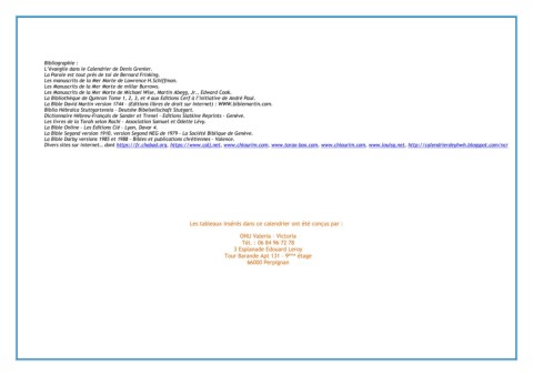 Divers sites sur internet… dont https://fr.chabad.org, https://www.calj.net, www.chiourim.com, www.torax-box.com, www.chiourim.com, www.louisg.net, http://calendrierdeyhwh.blogspot.com/ncr